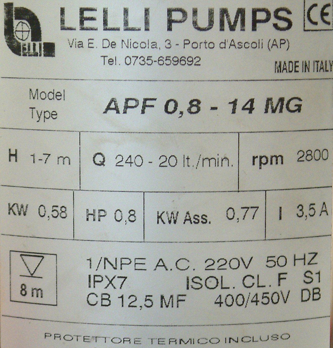 Pompă de drenaj Lelli Pumps APF 0,8-14 MG - preţ 900 Lei cu TVA